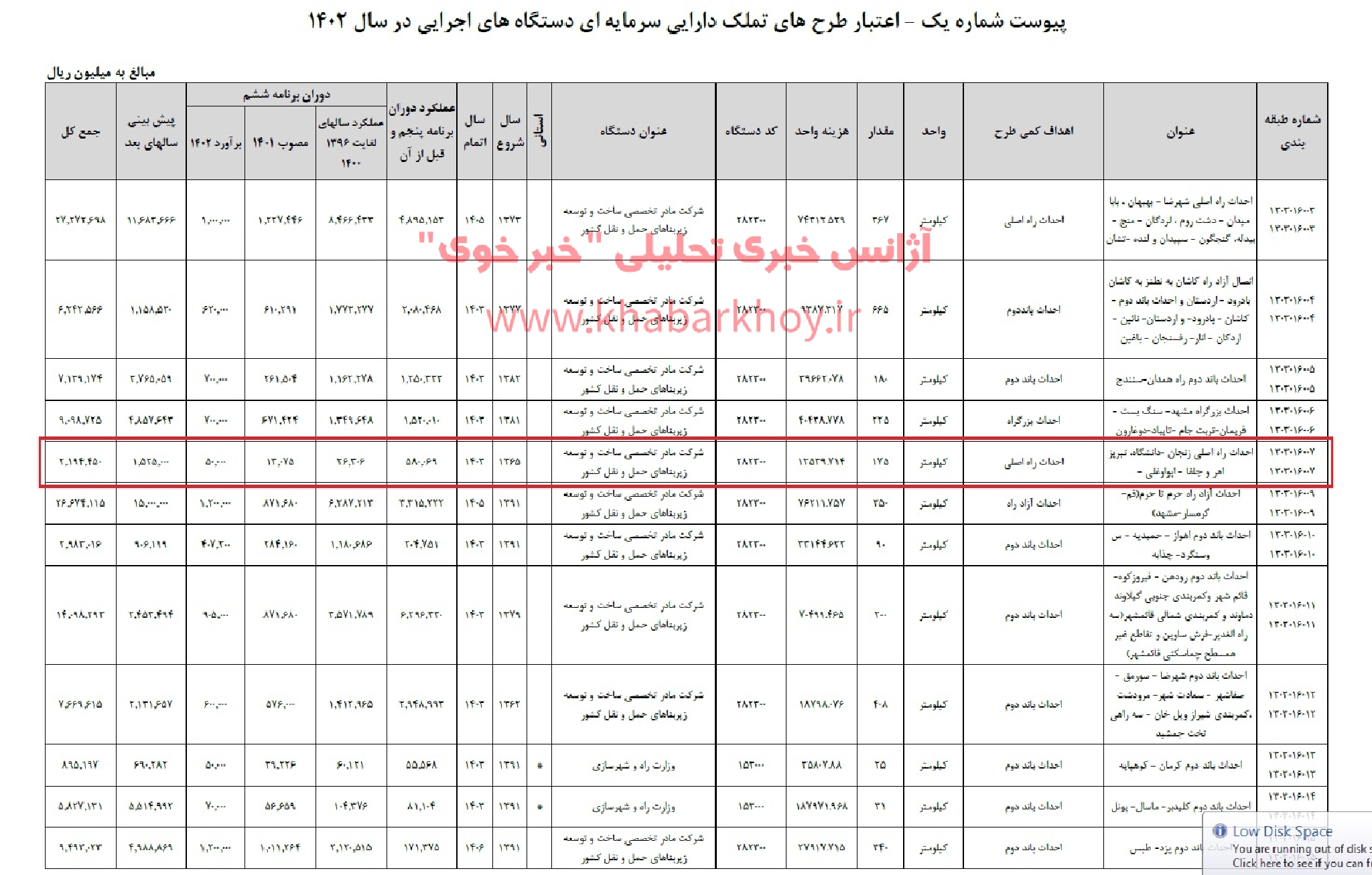 شایان ذکر است: با بررسی لایحه بودجه ۱۴۰۲ کل کشور، به مواردی برمی خوریم که بعضا بخشی از نقاط شهرستان خوی (راه ها ) در قالب احداث و یا بهسازی پروژه های کلان کشوری همچون: احداث کریدور غرب کشور، بهسازی راه های اصلی شهرستان ها در استان های آذربایجان غربی و شرقی و … نیز در قالب آن پروژه های دیده شده است.