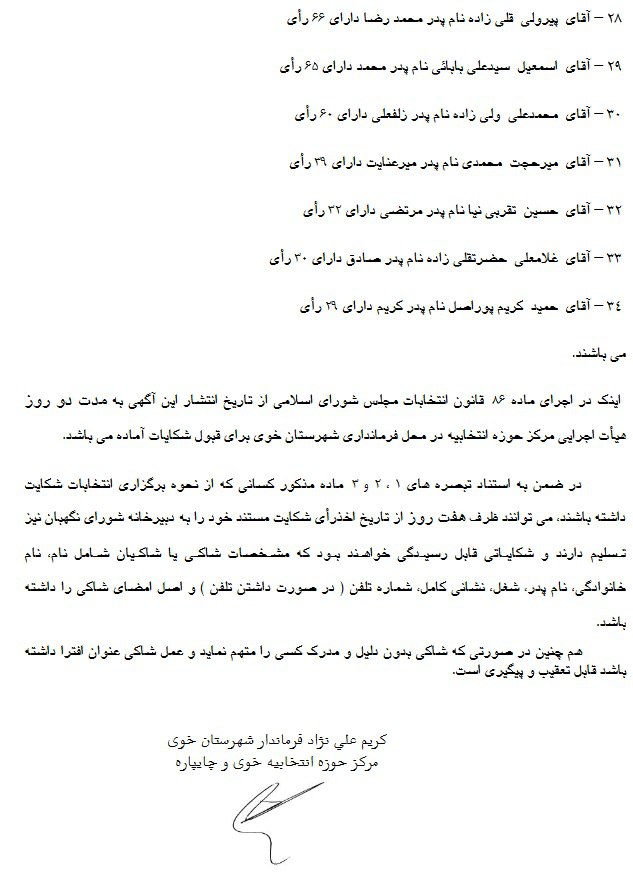 انتخابات نمایندگی مجلس در خوی و چایپاره به روایت آمار