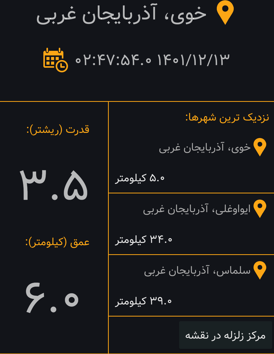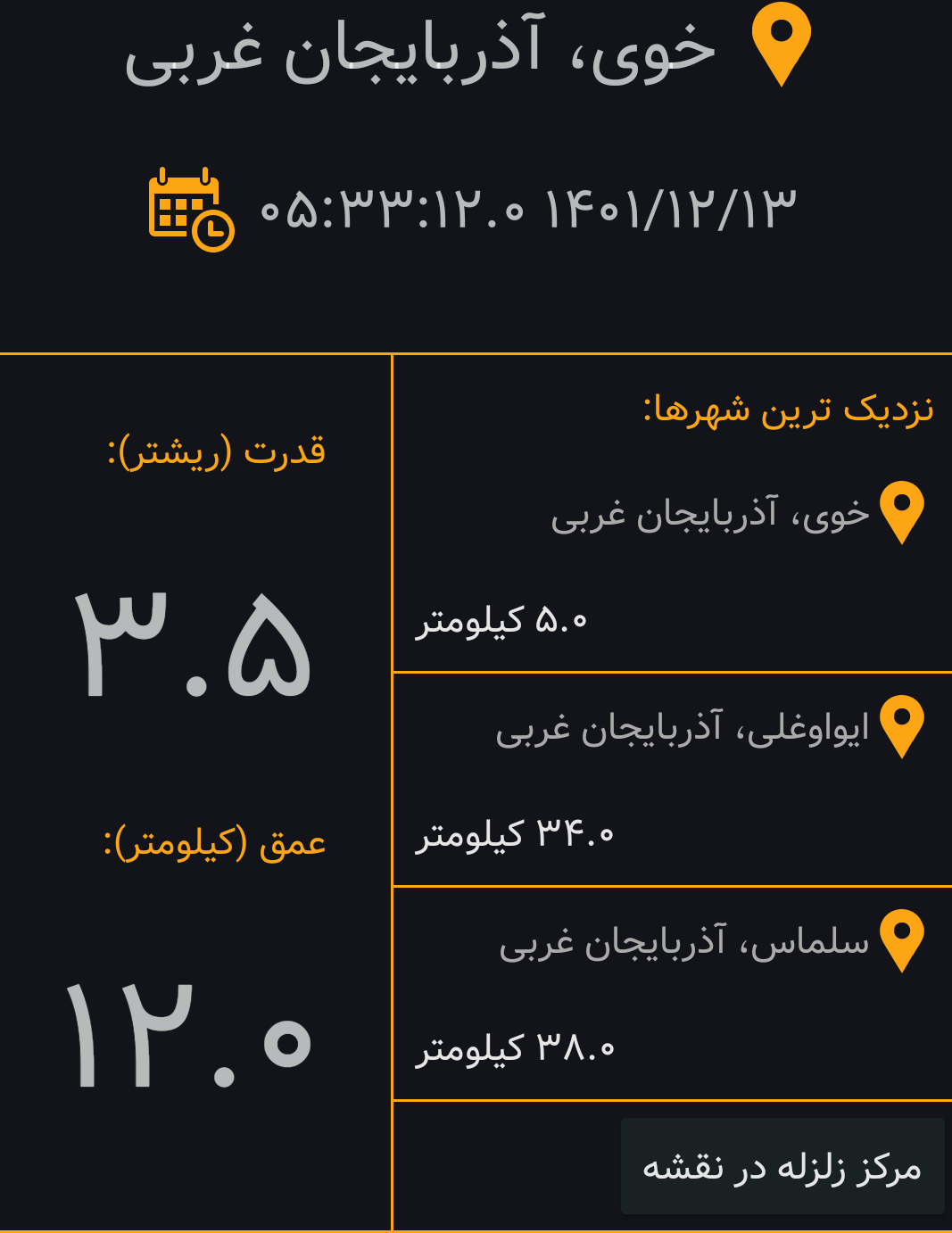 مشخصات زمین لرزه های امروز (۱۳ اسفند ۱۴۰۱)؛