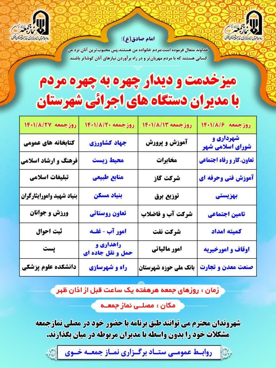 ۱- احتمالاً؛ برخی ها از خلوتی میزهای خدمت این استنباط را داشته باشند که، مردم کمترین مشکلی در گذران زندگی ندارند و تمام ادارات و ارگانهای مختلف به وظایف خود به نحو احسن عمل مینمایند و مشکلی باقی نمیماند تا مردم آن را در میزهای خدمت برپا شده در مصلی نمازجمعه، مطرح و بازگو نمایند…!