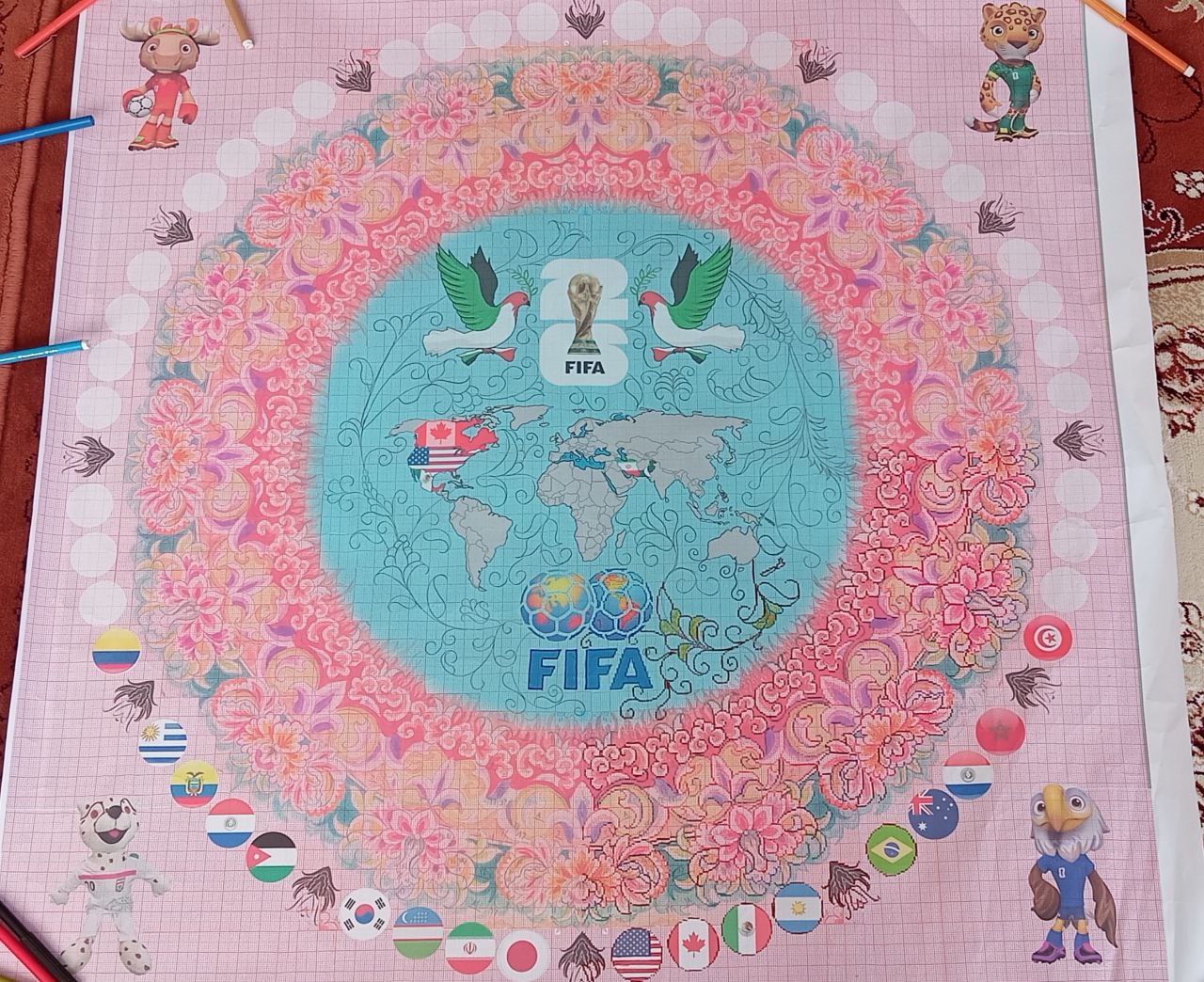 به گزارش خبرنگار “خبرخوی” ، فریدون نقیلو هنرمند برجسته فرشبافی از شهر دیزجدیز شهرستان خوی، اثری خلاقانه و نمادین با عنوان تابلوفرش صلح و دوستی؛ جام جهانی فوتبال ۲۰۲۶ طراحی کرده است.