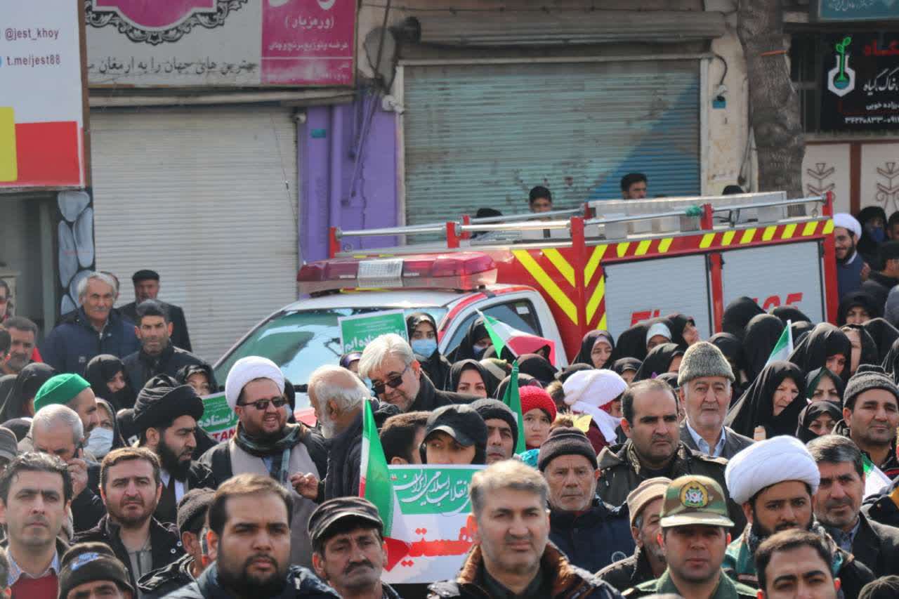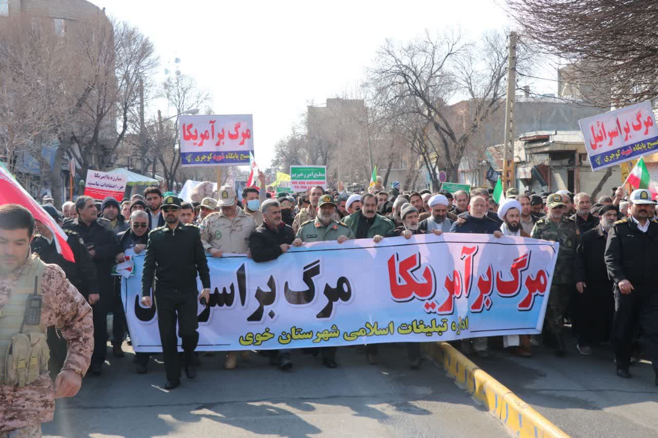 همزمان با جشن 44 سالگی پیروزی شکوهمند انقلاب اسلامی، مردم زلزله زده شهرستان خوی، باوجود سپری نمودن ایامی سخت و دشوار پس از زلزله 5/9 رشتری، با حضور پرشور و باشکوه در راهپیمایی ۲۲ بهمن مشت محکمی بر دهان یاوه گویان و استکبار جهانی زدند.