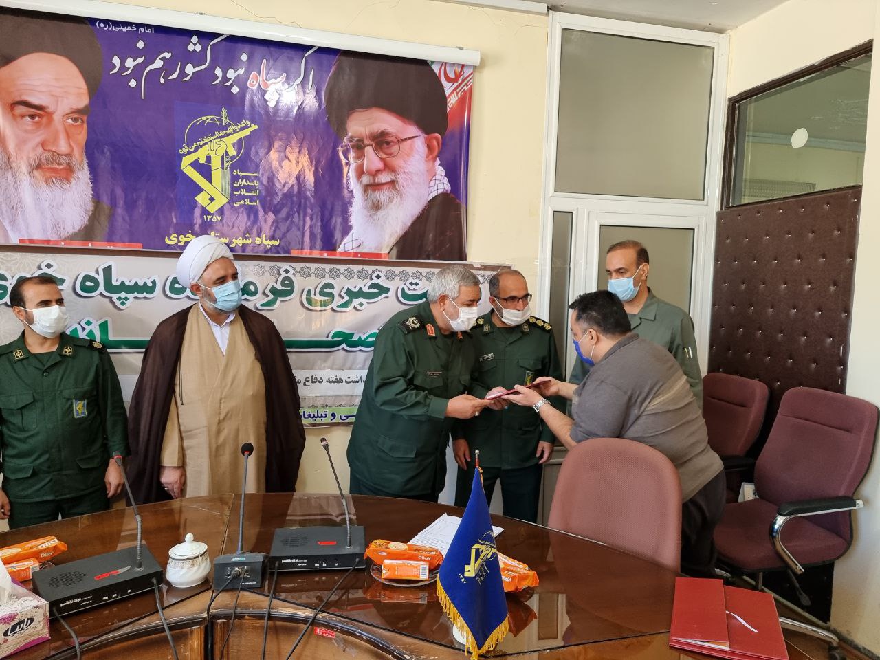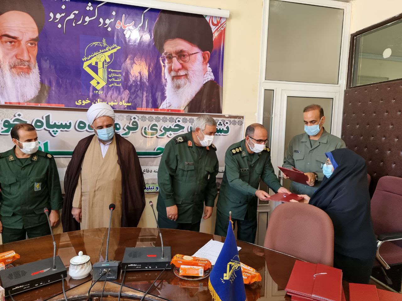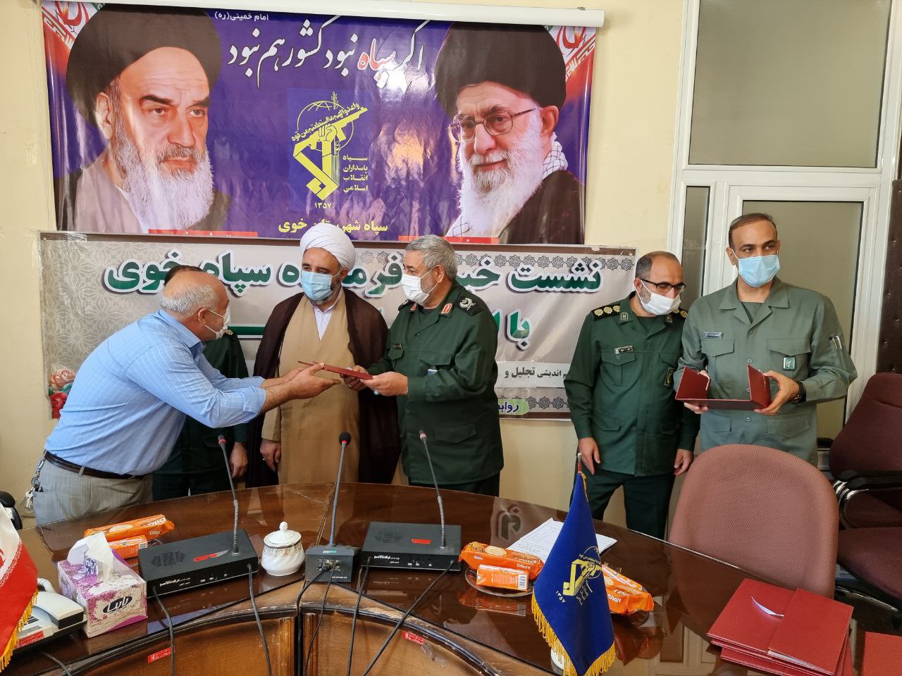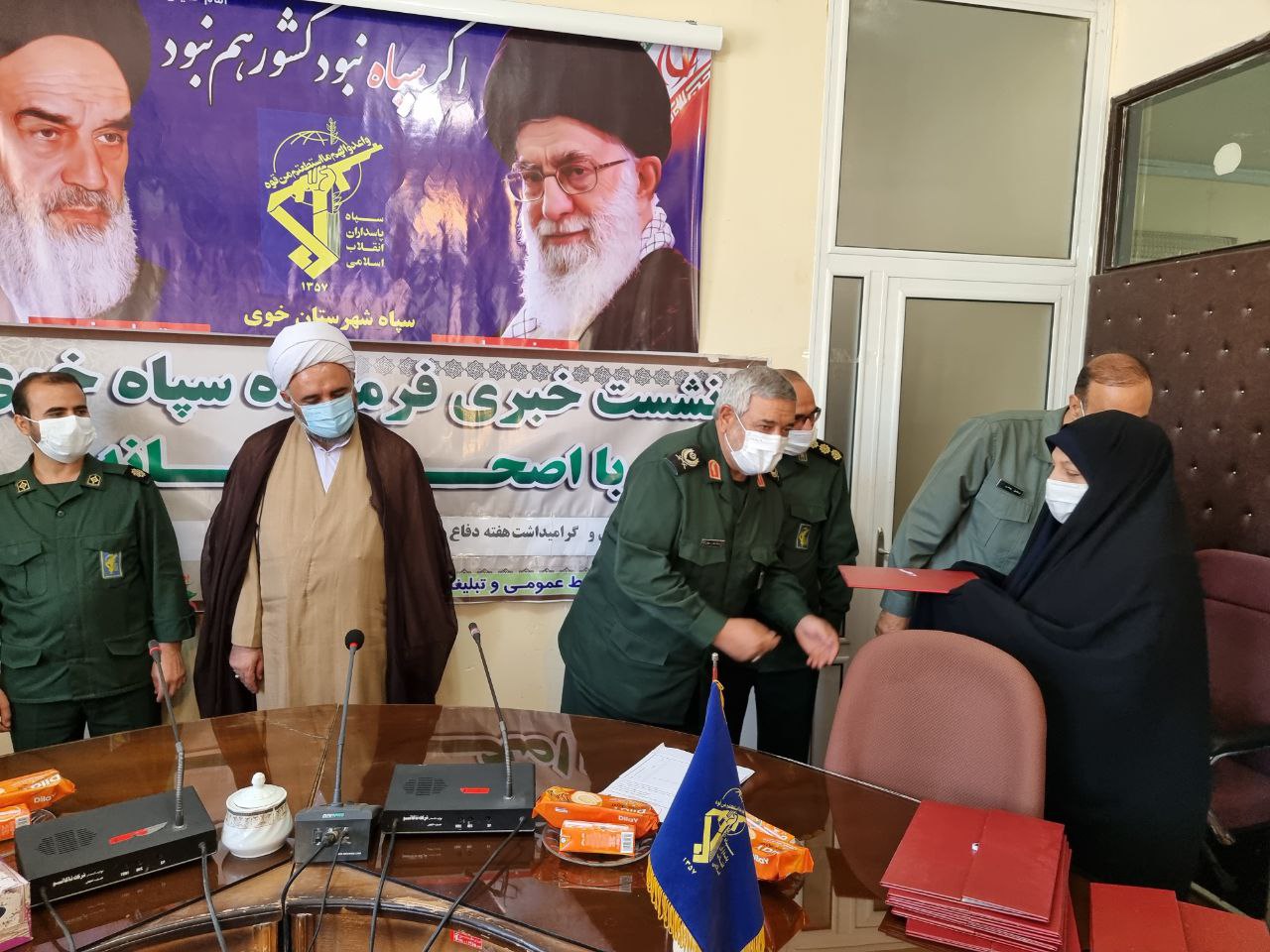 در پایان این نشست از خبرنگاران و اصحاب رسانه توسط سردار علایی فرمانده سپاه شهرستان خوی و حجت الاسلام والمسلمین خیراله شریفی مسئول دفتر نماینده ولی فقیه در سپاه خوی تجلیل به عمل آمد.