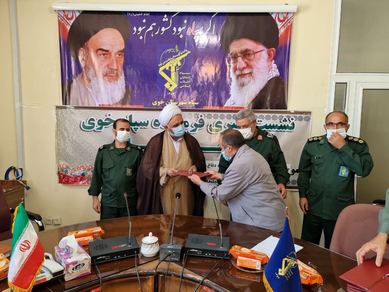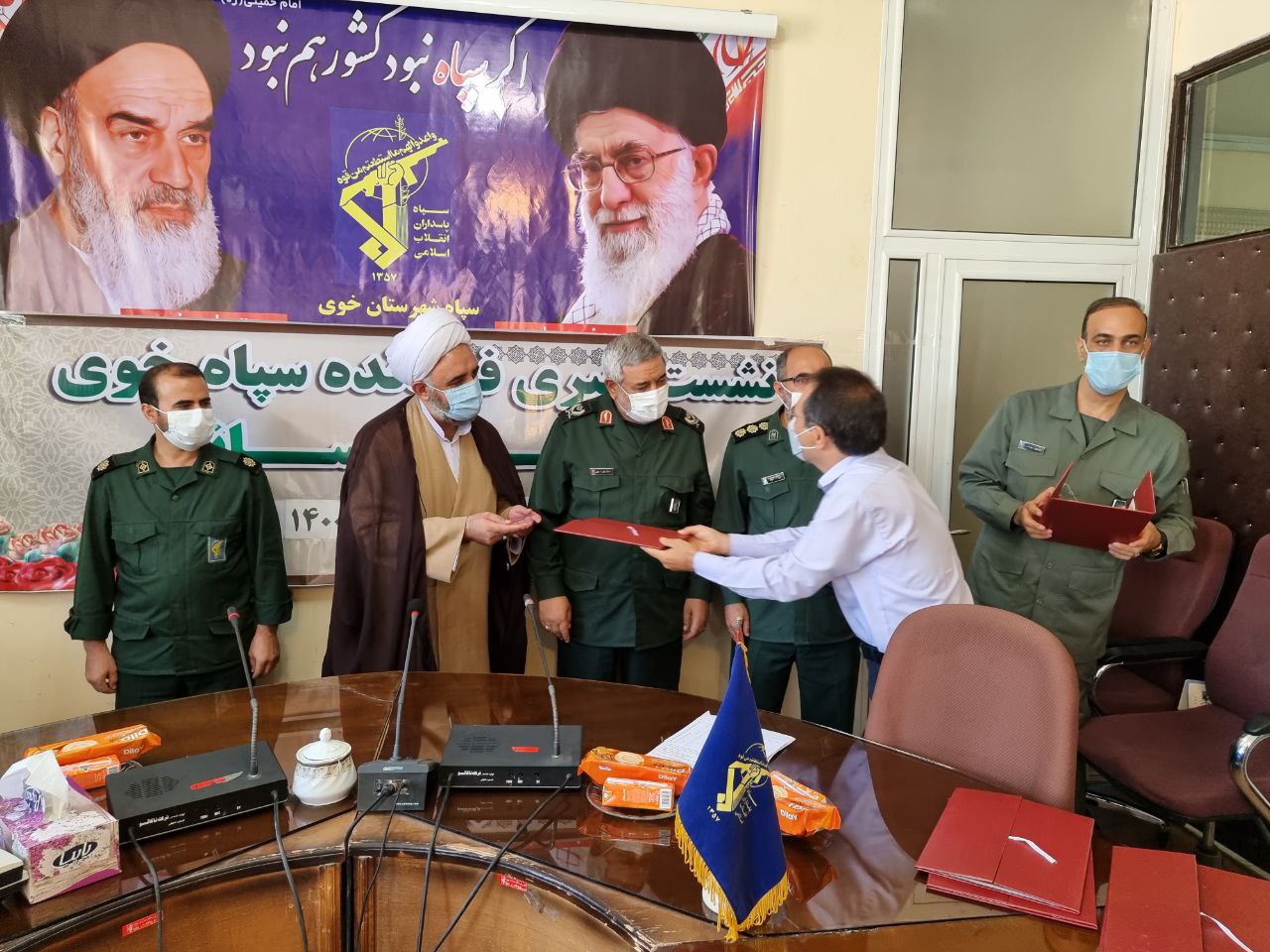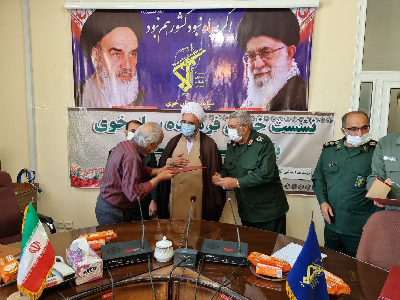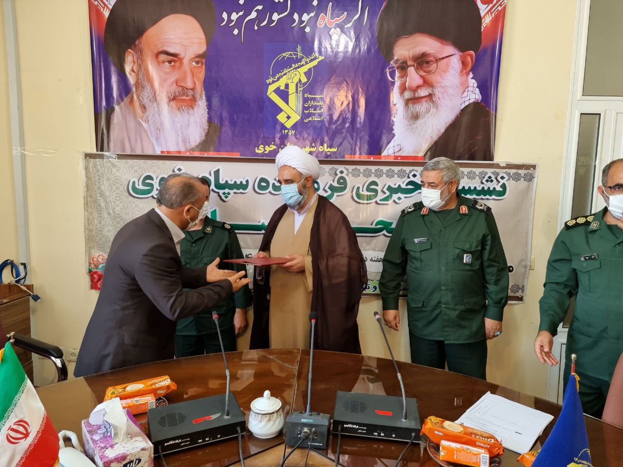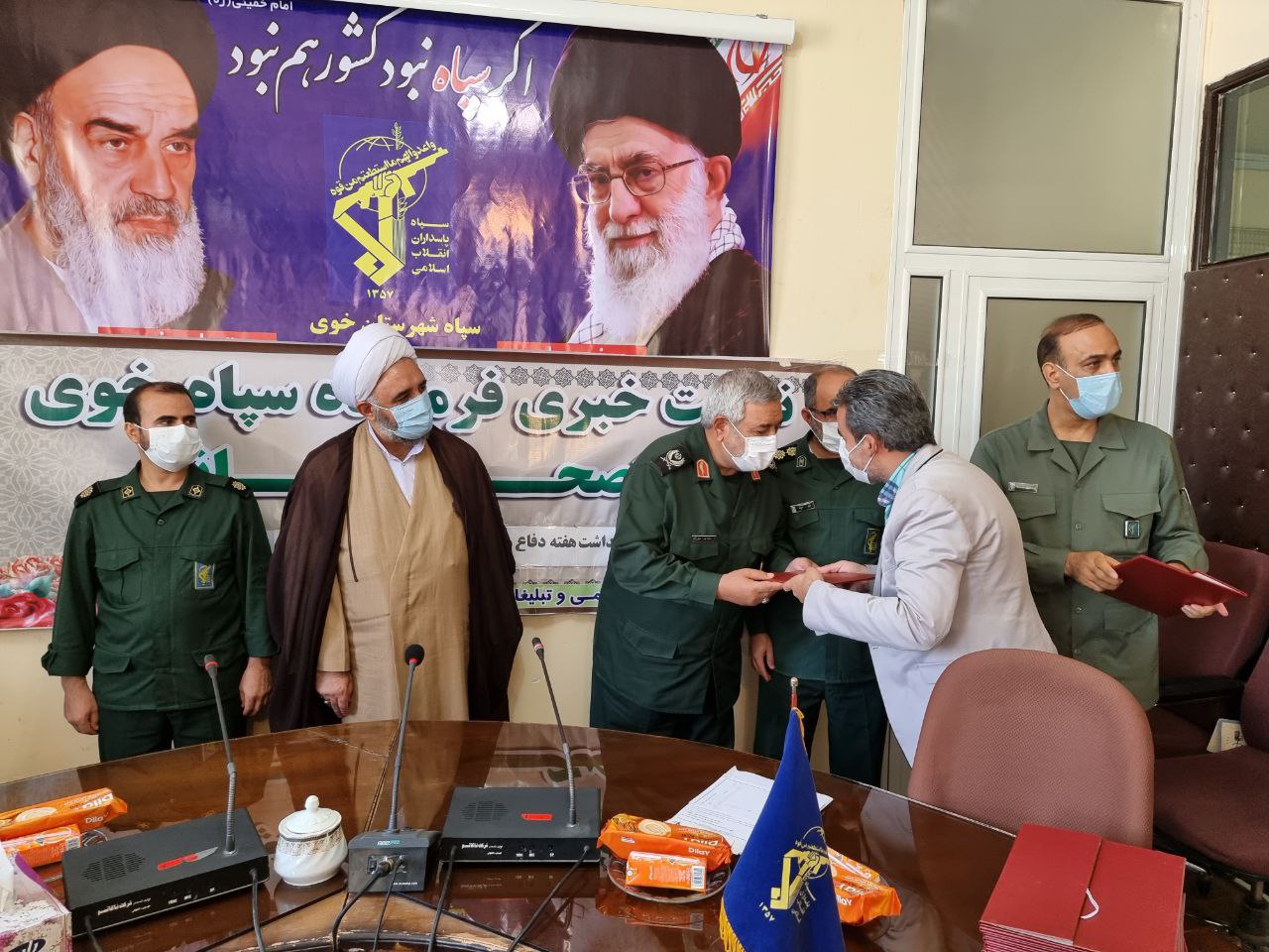 در پایان این نشست از خبرنگاران و اصحاب رسانه توسط سردار علایی فرمانده سپاه شهرستان خوی و حجت الاسلام والمسلمین خیراله شریفی مسئول دفتر نماینده ولی فقیه در سپاه خوی تجلیل به عمل آمد.
